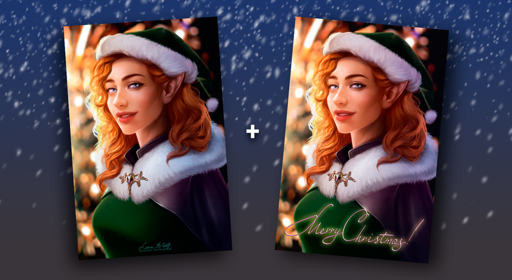 Christmas illustration "Santa's Elf" which you can download in full resolution for personal usage. Product includes one version signed "Merry Christmas!" by me (print it and present as a X-mas card to someone special! ^^) and the other version with my author's sign only.